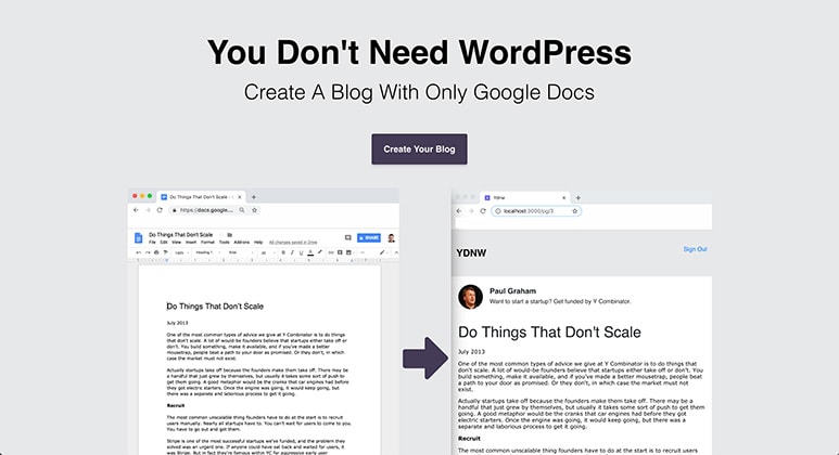 Googleドキュメントでブログを生成できるサービス「You Don't Need WordPress」